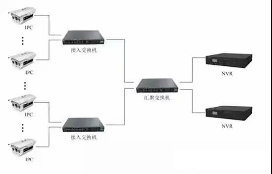 针对于50个点以上的中大型工程,需要采用三层网络架构:接入层、汇聚层、核心层。